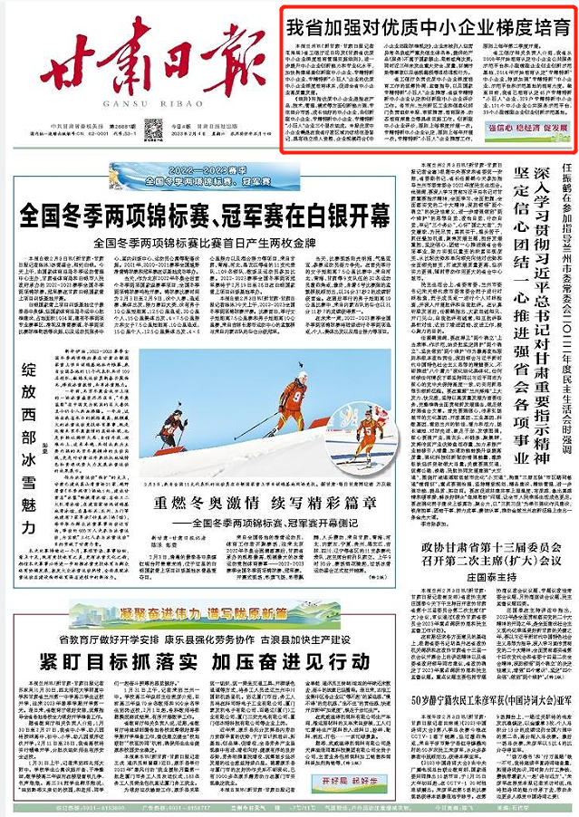 本報蘭州訊(新甘肅·甘肅日報記者 范海瑞)省工信廳近日印發(fā)《甘肅省優(yōu)質(zhì)中小企業(yè)梯度培育管理實施細則》,進一步提升中小企業(yè)創(chuàng)新能力和專業(yè)化水平,加快構(gòu)建涵蓋創(chuàng)新型中小企業(yè)、專精特新中小企業(yè)、專精特新“小巨人”企業(yè)的優(yōu)質(zhì)中小企業(yè)梯度培育體系,促進全省中小企業(yè)高質(zhì)量發(fā)展。
